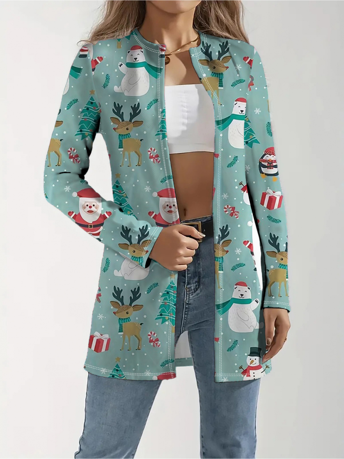 Plus Size, Plus Size Women's Oversized Cardigan Coat - Soft Machine-Washable Long Sleeve Sweater Jacket, Loose Fit Winter Warm Blazer for Casual & Office Wear, Cozy Fall Winter Clothing (No Collar, Button-Free) - Plus Size Friendly