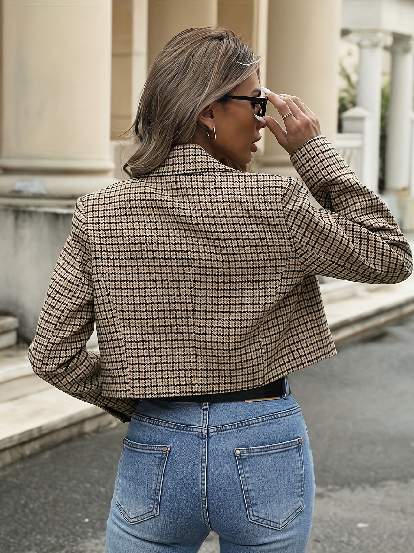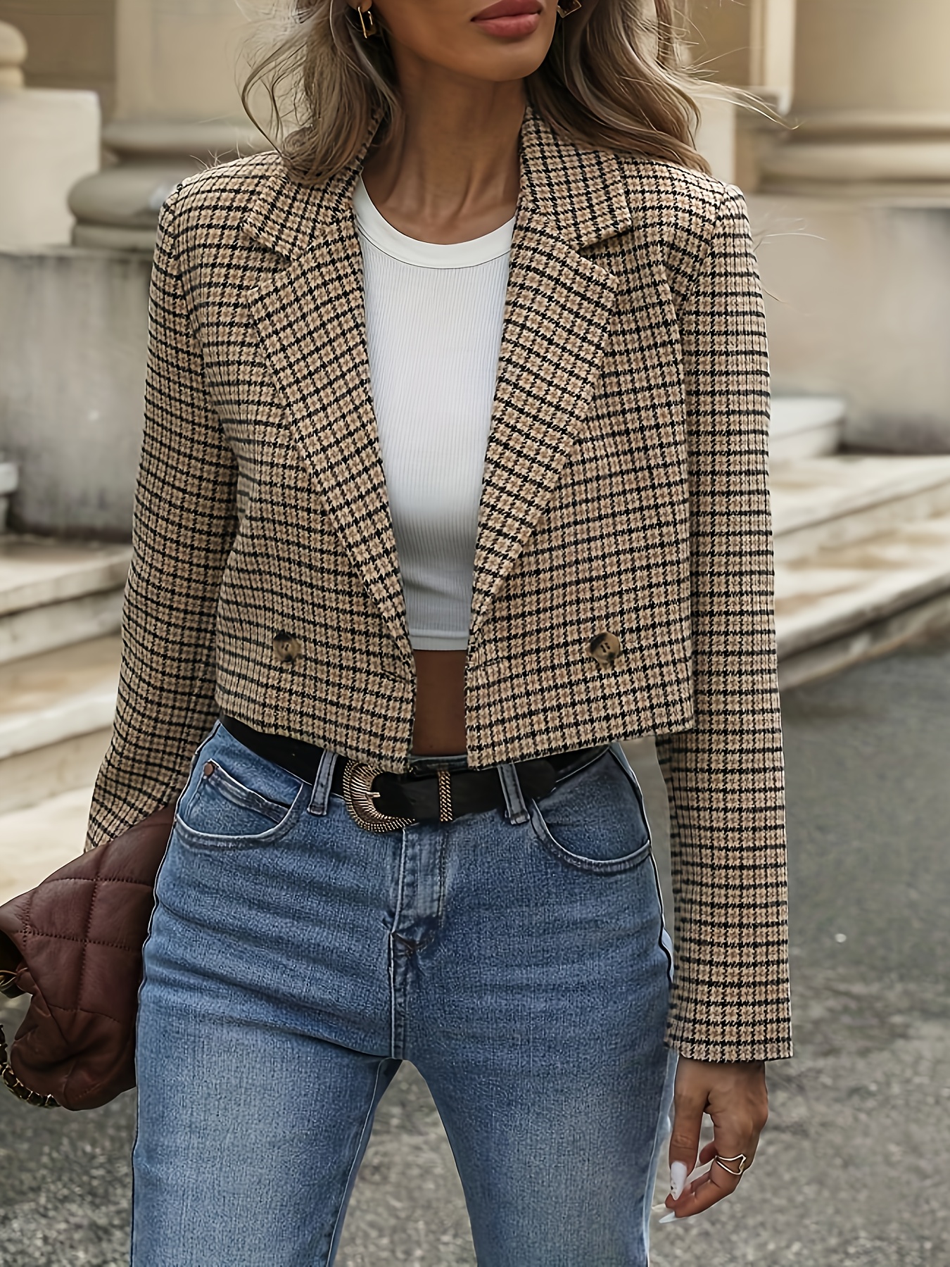 Women's Short Plaid Suit Jacket - Double Breasted Blazer with H-Line Silhouette, Loose Fit Short Length for Professional & Smart-Casual Outfits, Spring Summer Fall (Suitable for, Bluffers/Events)