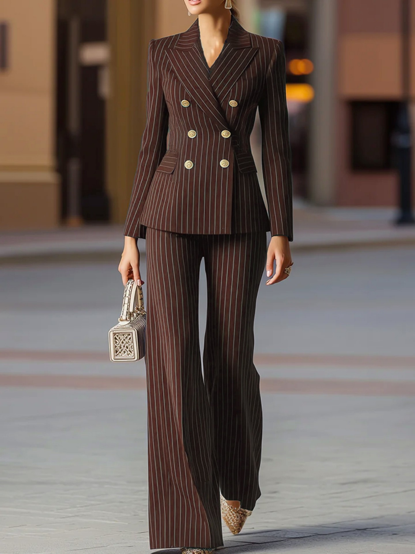 Women's Summer Suit Set, Loose Fit, Wide - leg Trousers Design, Decorated with Metal Buttons, Trendy and Versatile, Suitable for Weekend Outings/ Friends' Gatherings/ Shopping, Must - have for Casual Fashion