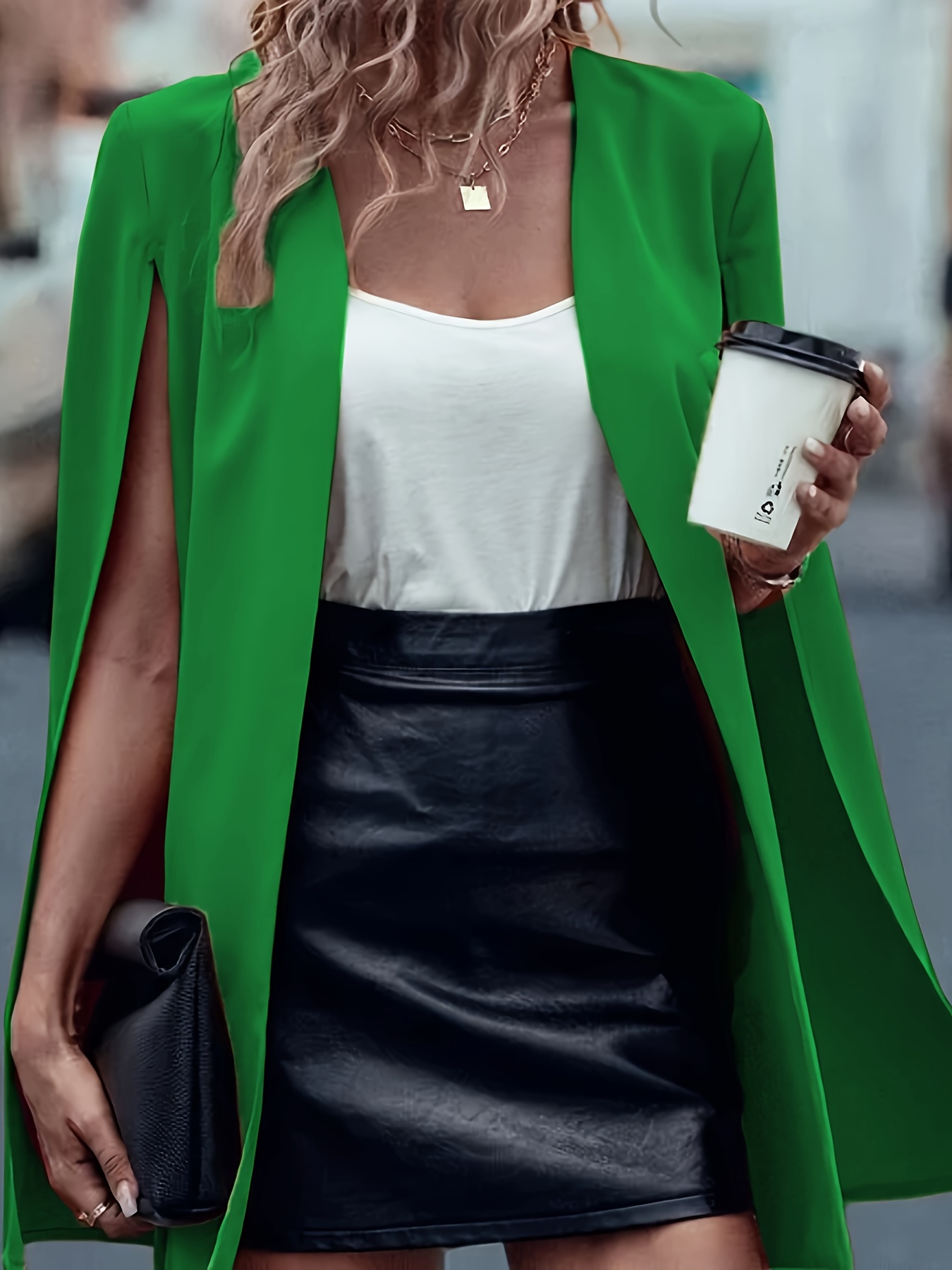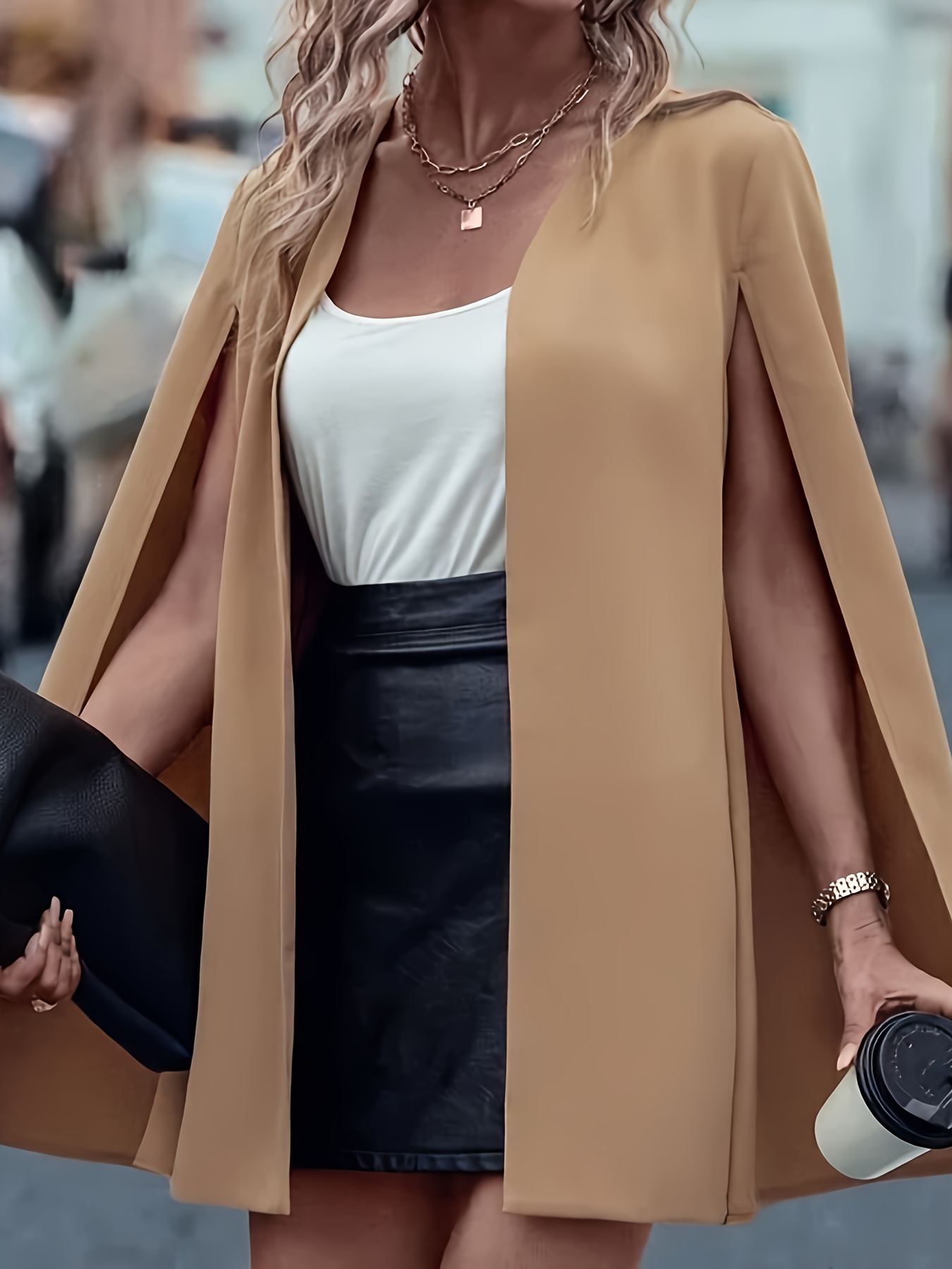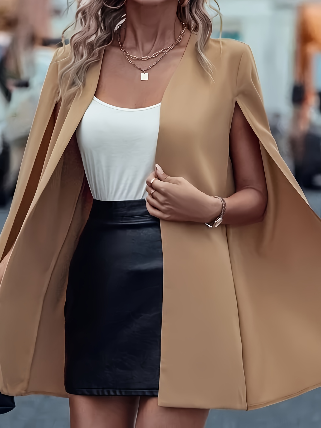 [Versatile Blazer] Elegant Women's Cape Sleeve Blazer Jacket | Solid Color H-Silhouette Open Front Design, Versatile All-Season Casual to Professional Outerwear | Quality Fabric, Minimalist Style, Dry Clean Only