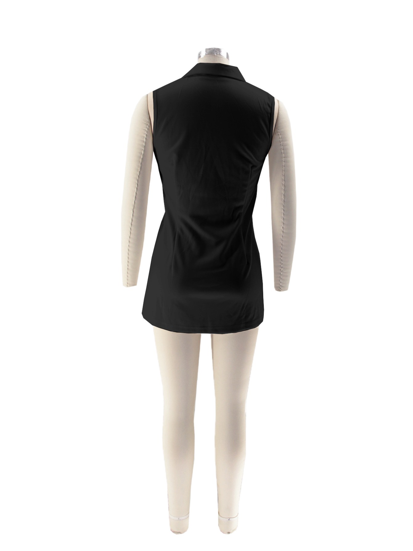Women's Slim-Fit European Y2K Solid-Color Sleeveless Collar Blazer Dress - A-Line Single-Button Jacket, Structured Long Sleeve Blouse for, Commuting & Going Out, Tailored Winter-to-Fall Outerwear (Hand Wash/Dry Clean)