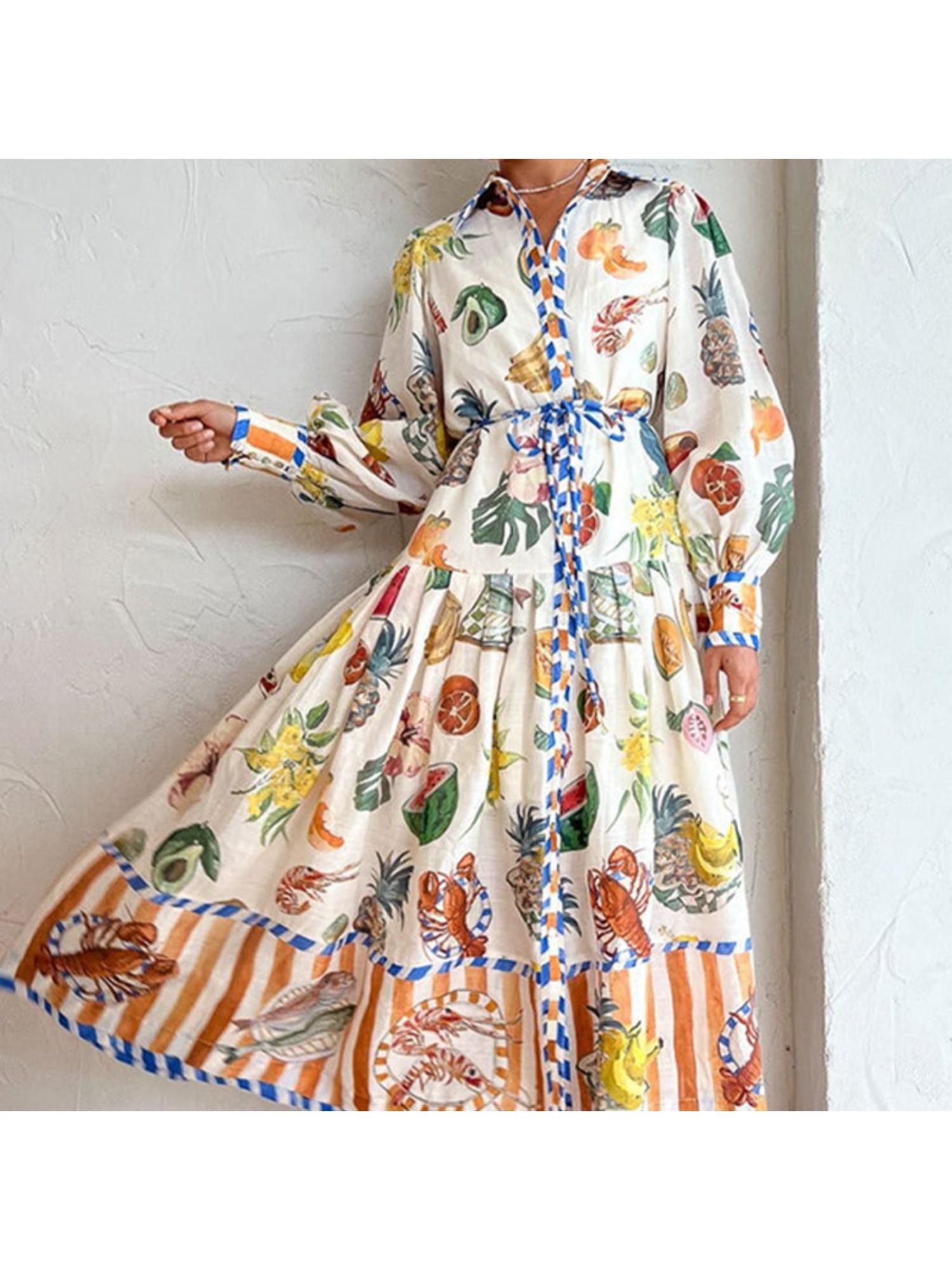 Women'S Retro Patchwork Print Maxi Dress | Belted Long Sleeve Gown for Artistic & Bohemian Chic Style, Geometric-Pattern, Fall/Winter Season, Off the Shoulder Collar, Regular Fit, Flared Hem