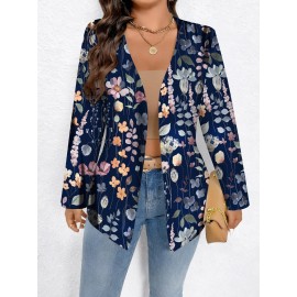 Plus Size - Plus Size Women'S Floral Print Long Sleeve Cardigan - Oversized Coat with Vibrant Multicolor Flower Pattern, Soft Warm Winter Sweater for Casual Commuting, Outings & Parties, Versatile Layering Piece (No Collar Design