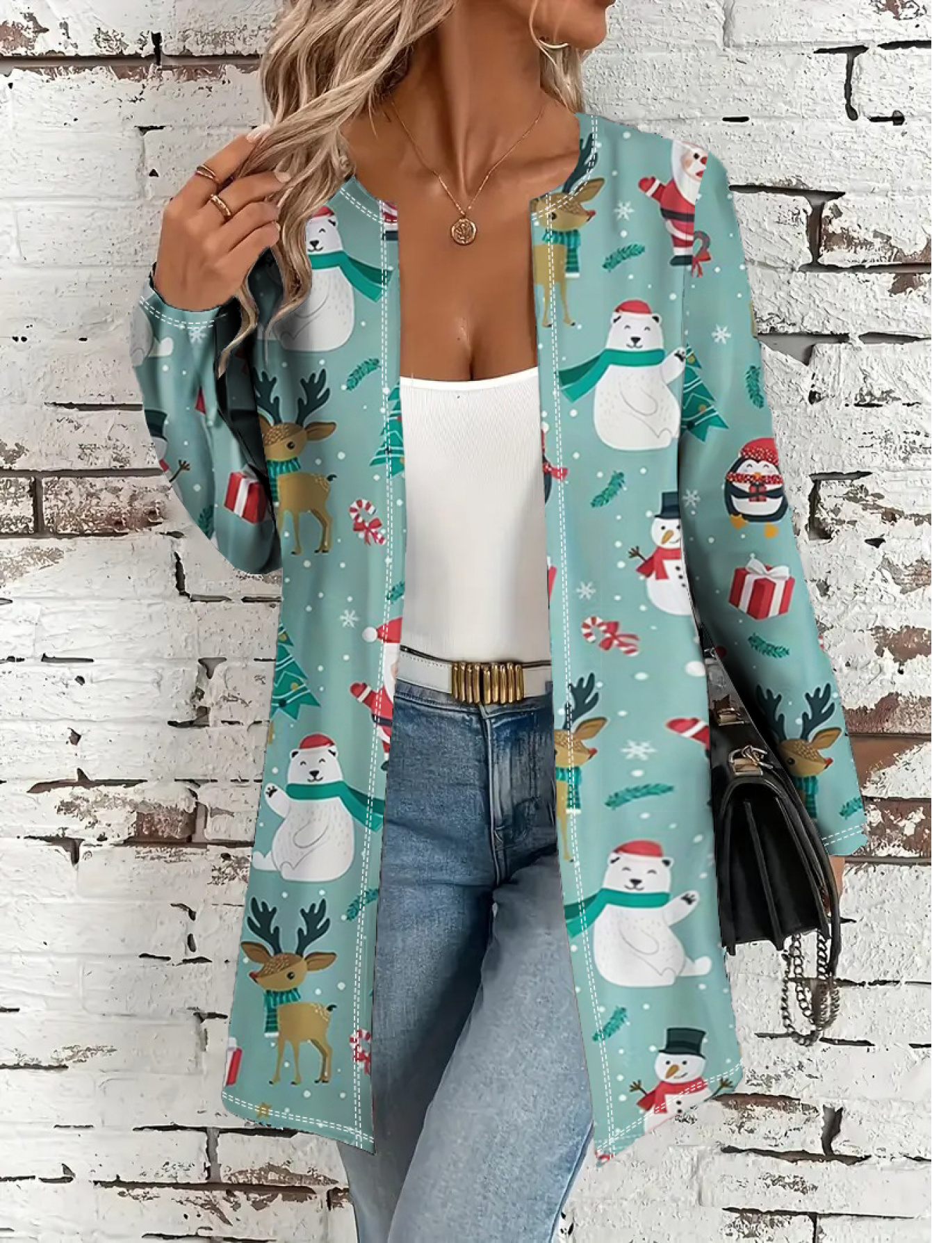Plus Size, Plus Size Women's Oversized Cardigan Coat - Soft Machine-Washable Long Sleeve Sweater Jacket, Loose Fit Winter Warm Blazer for Casual & Office Wear, Cozy Fall Winter Clothing (No Collar, Button-Free) - Plus Size Friendly