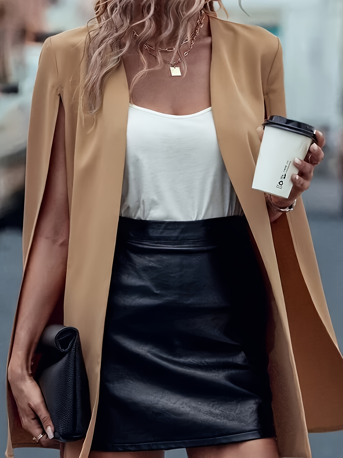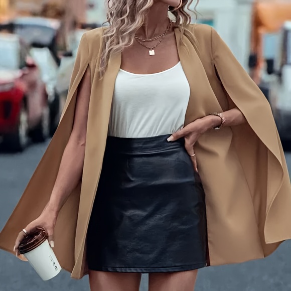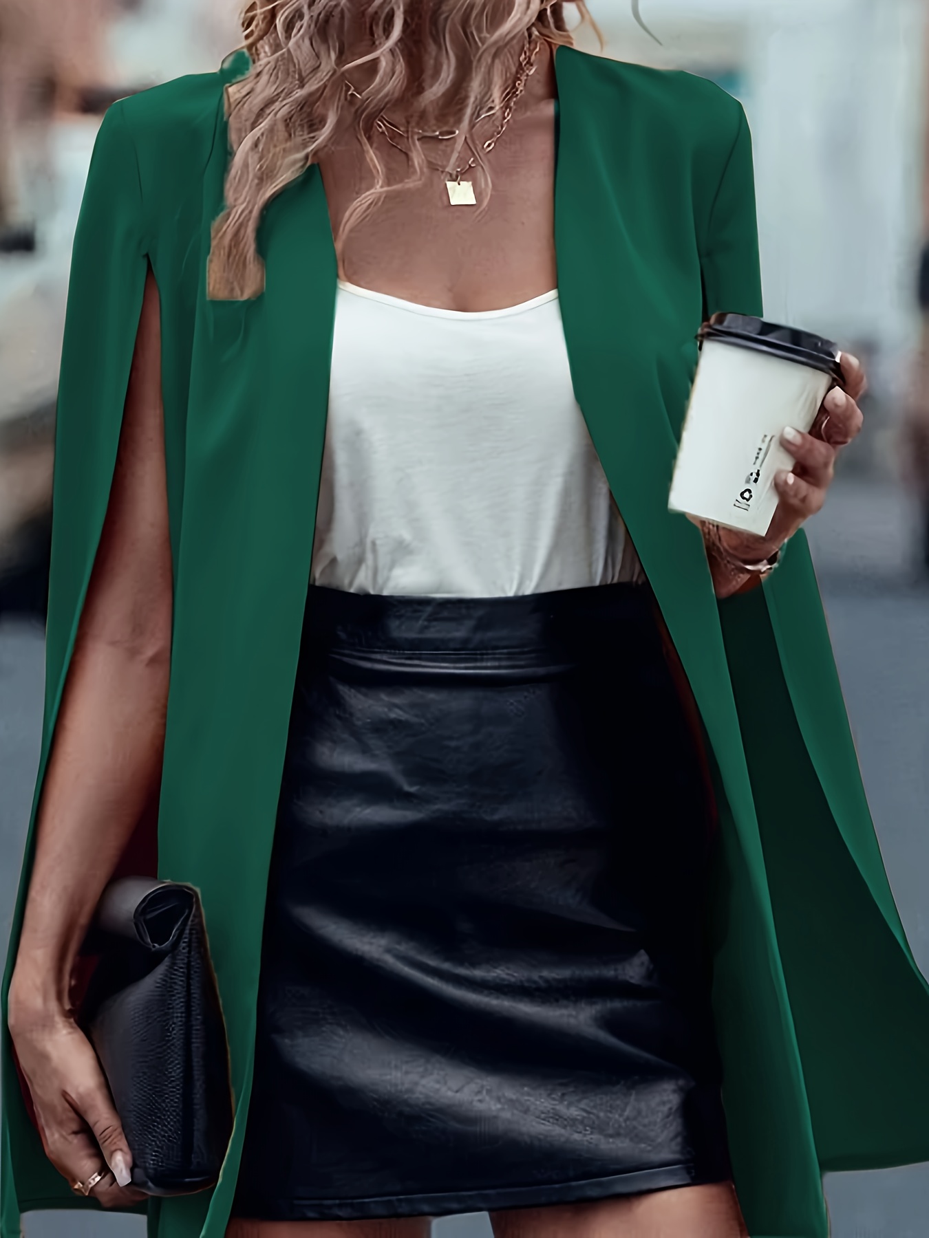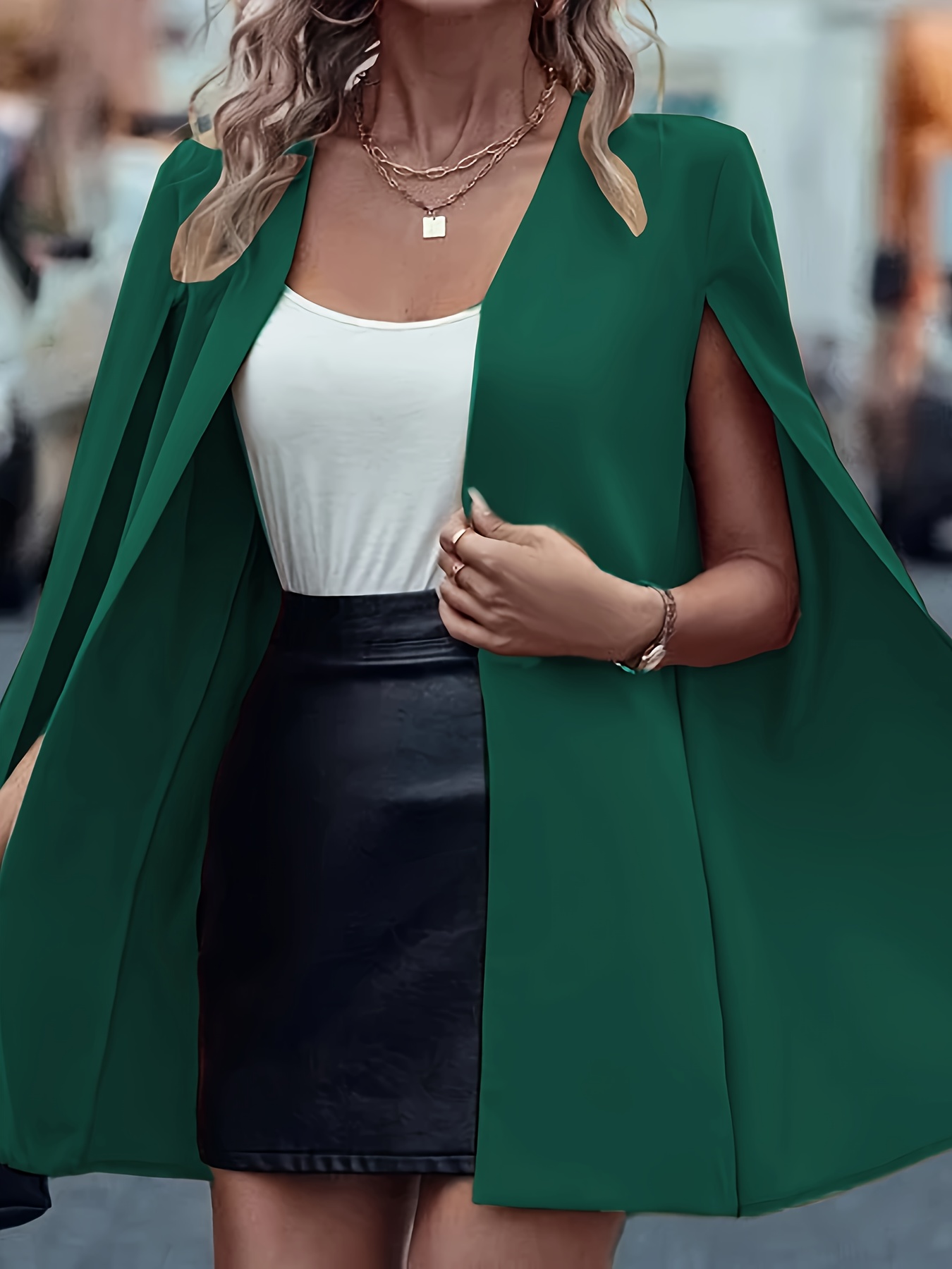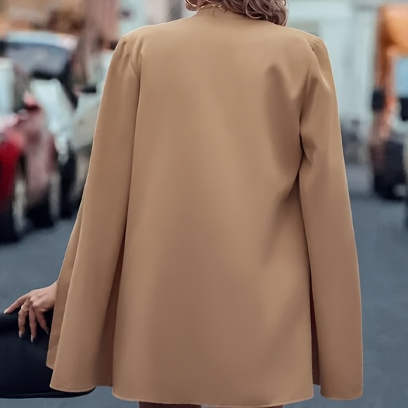 [Versatile Blazer] Elegant Women's Cape Sleeve Blazer Jacket | Solid Color H-Silhouette Open Front Design, Versatile All-Season Casual to Professional Outerwear | Quality Fabric, Minimalist Style, Dry Clean Only