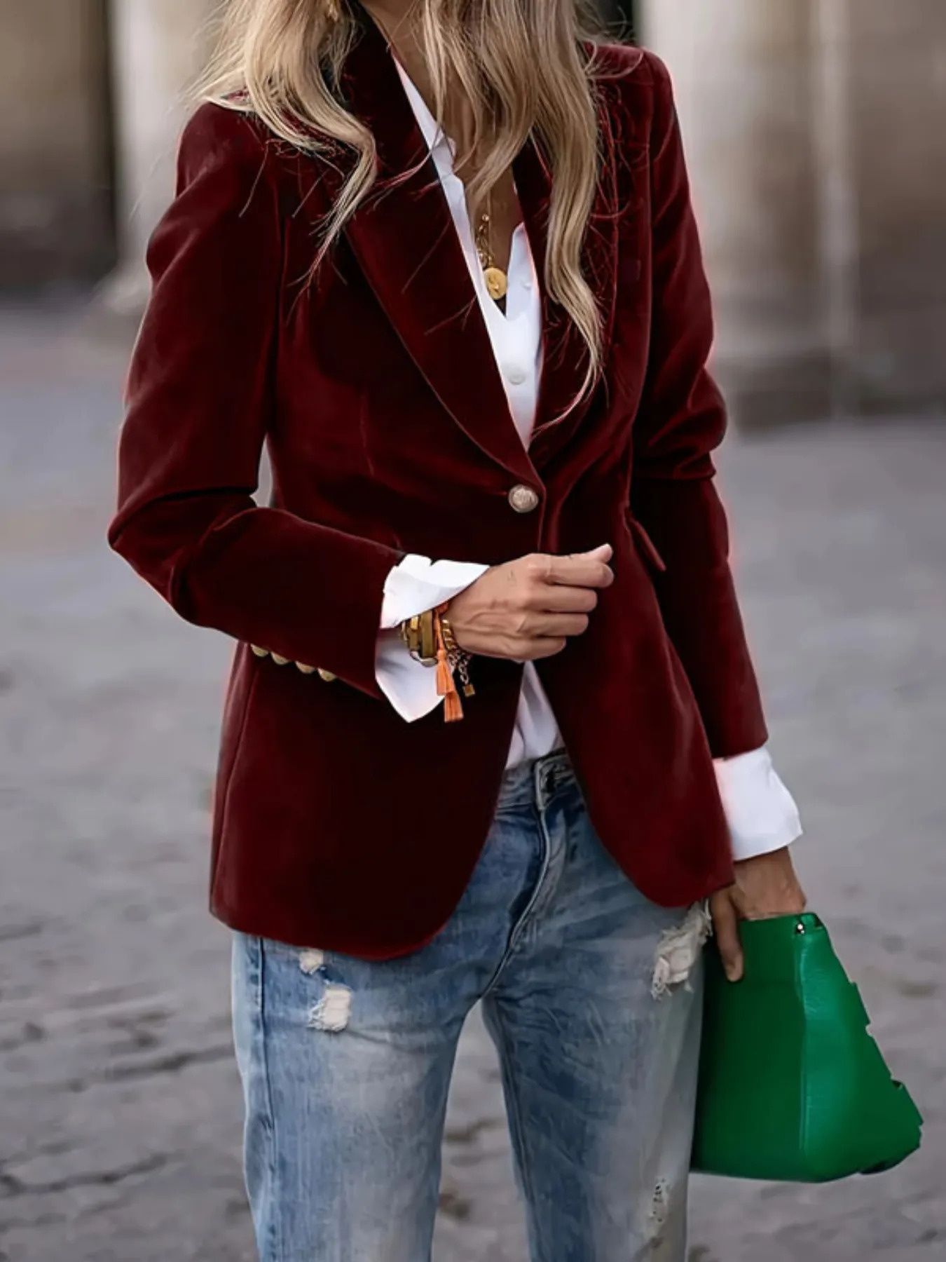Women's Elegant Slim-Fit for all-over button front closure Blazer - Solid Color T-Shaped Tailored Jacket, Fall Winter Spring Formal & professional Wear, Hand Wash/Dry Clean, Non-Stretch Luxury Outerwear