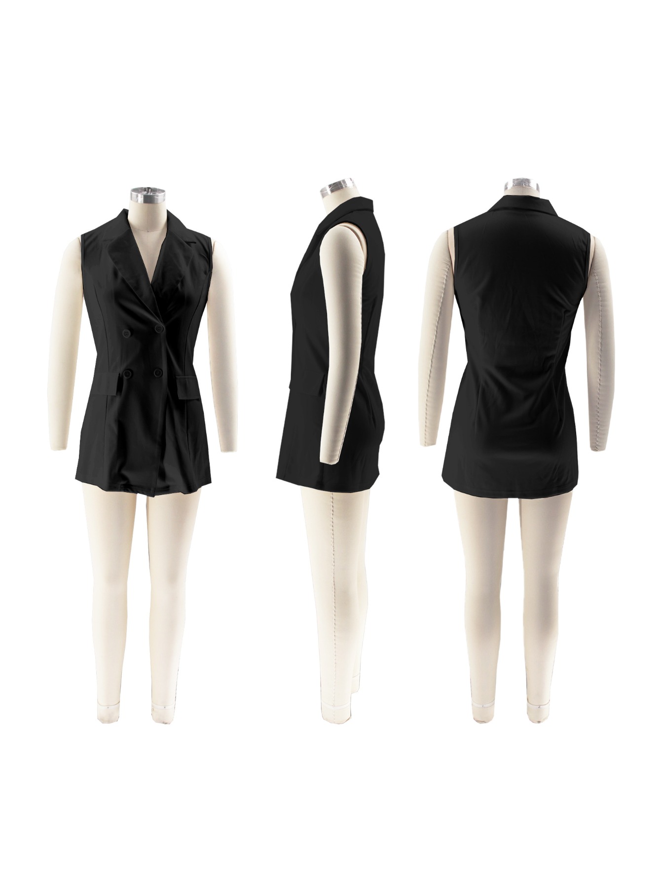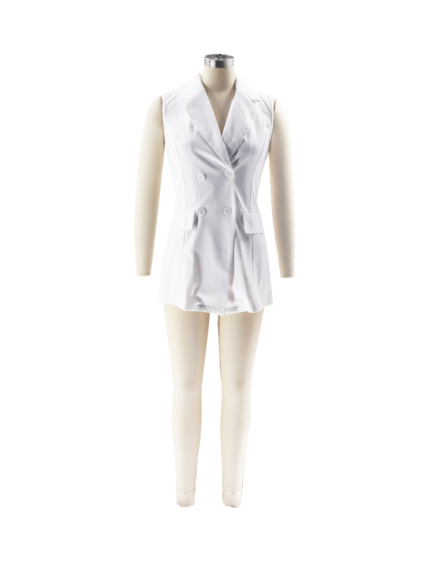 Women's Slim-Fit European Y2K Solid-Color Sleeveless Collar Blazer Dress - A-Line Single-Button Jacket, Structured Long Sleeve Blouse for, Commuting & Going Out, Tailored Winter-to-Fall Outerwear (Hand Wash/Dry Clean)