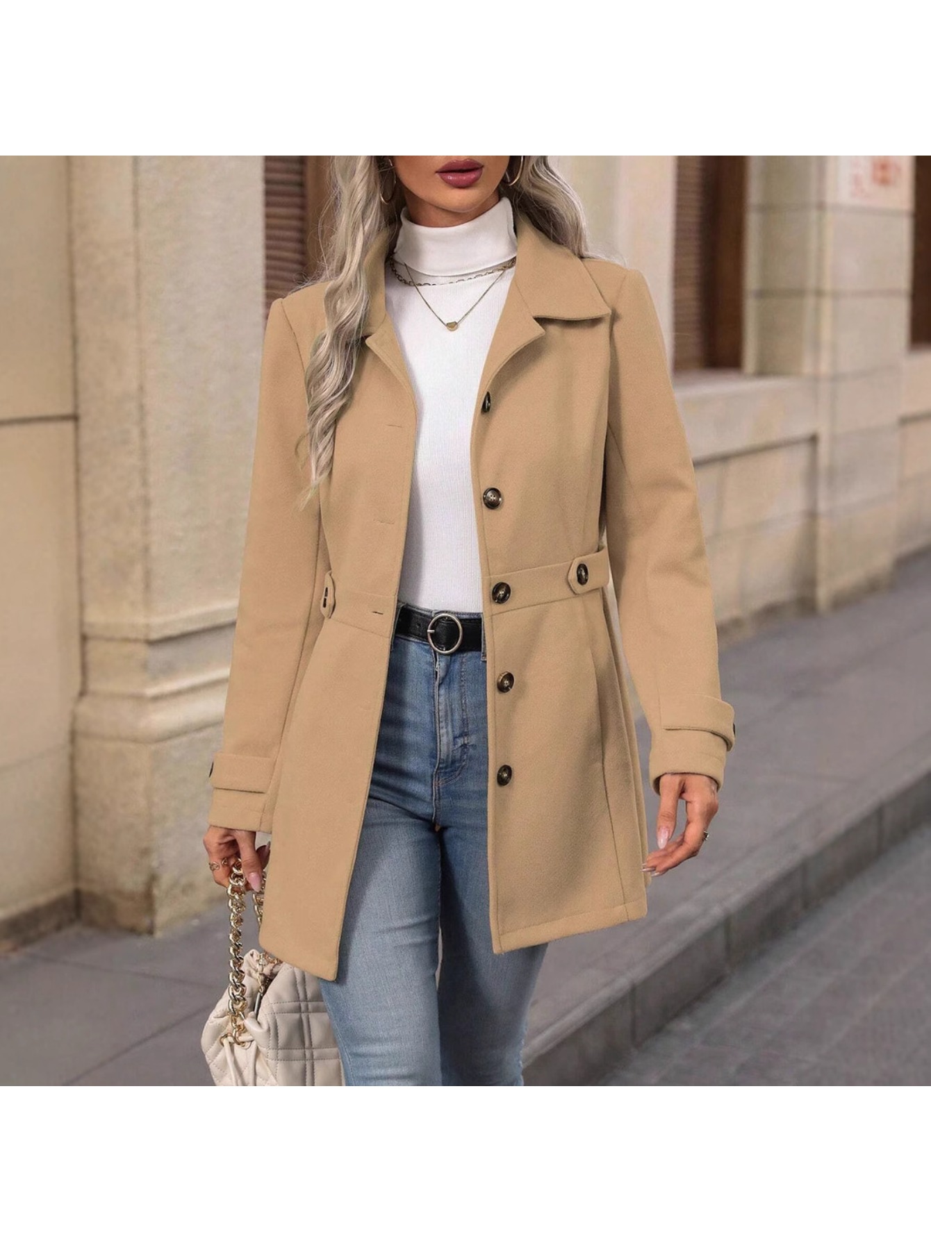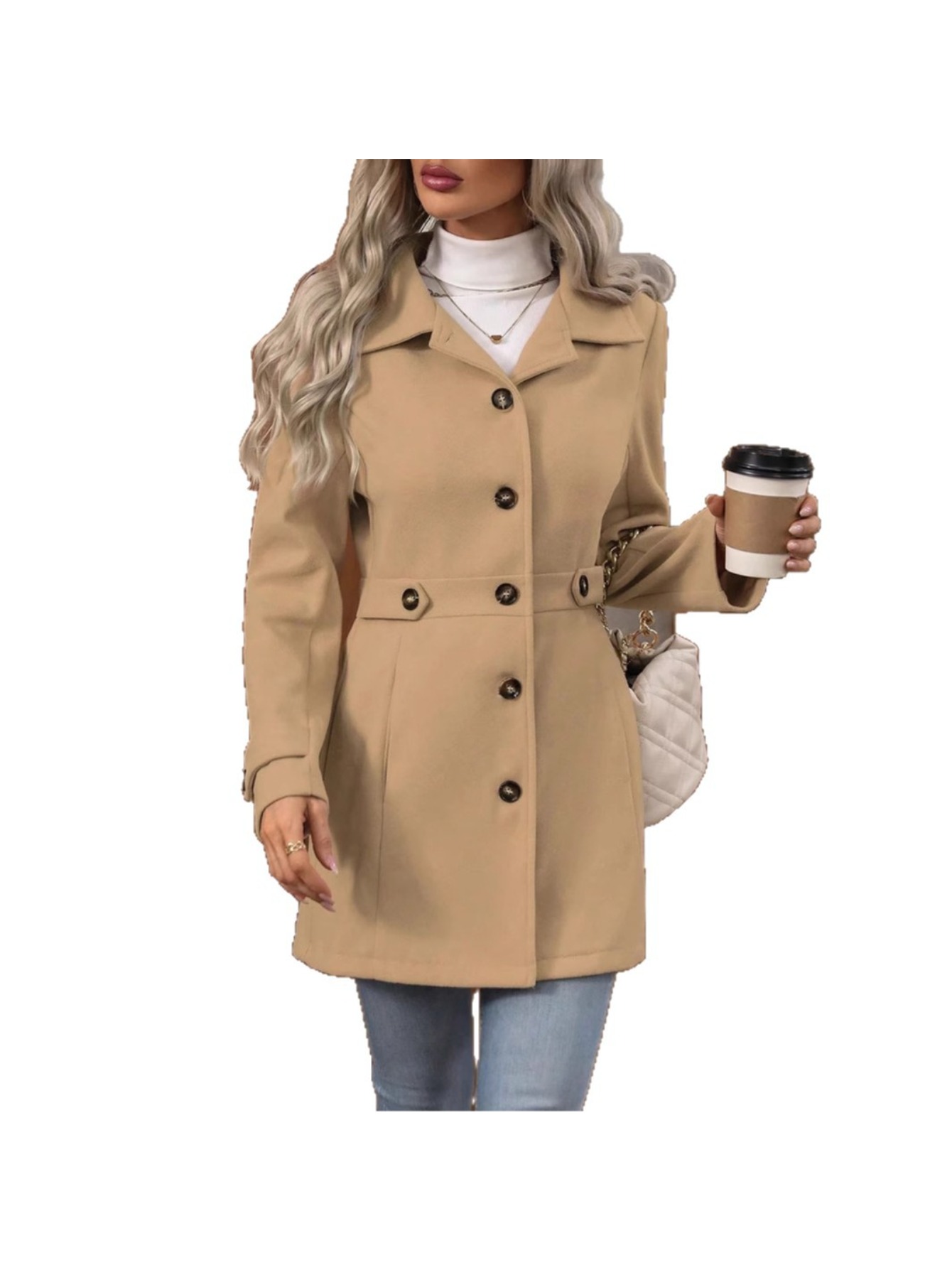 Women's Winter Blend Tweed Trench Coat - Thick Lapel Pea Coat with Single-Breasted Button Front, Slim Fit or Loose (Regular) Length, Machine Washable Dress Overcoat for Business Casual, Office & Casual Attire