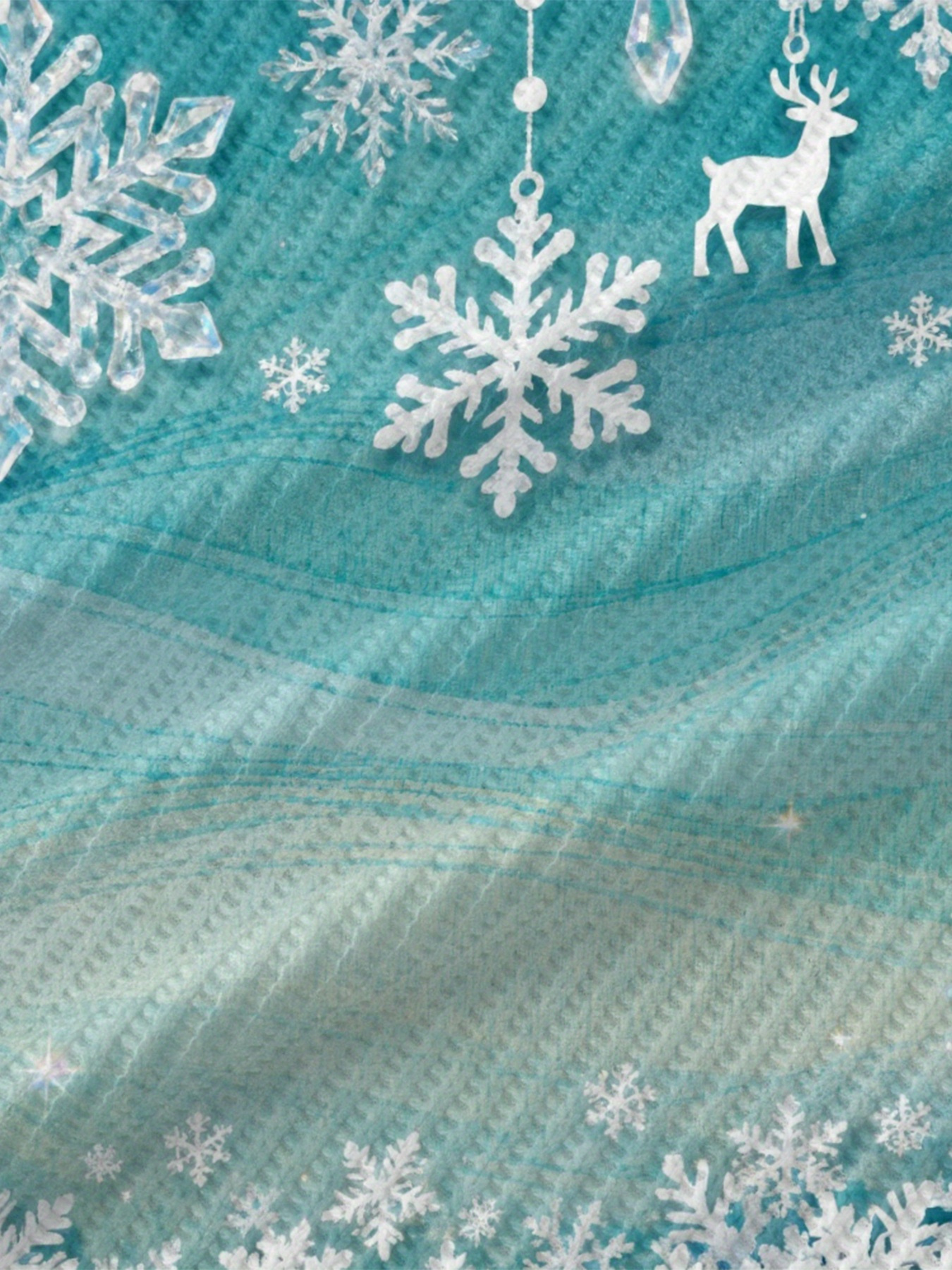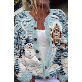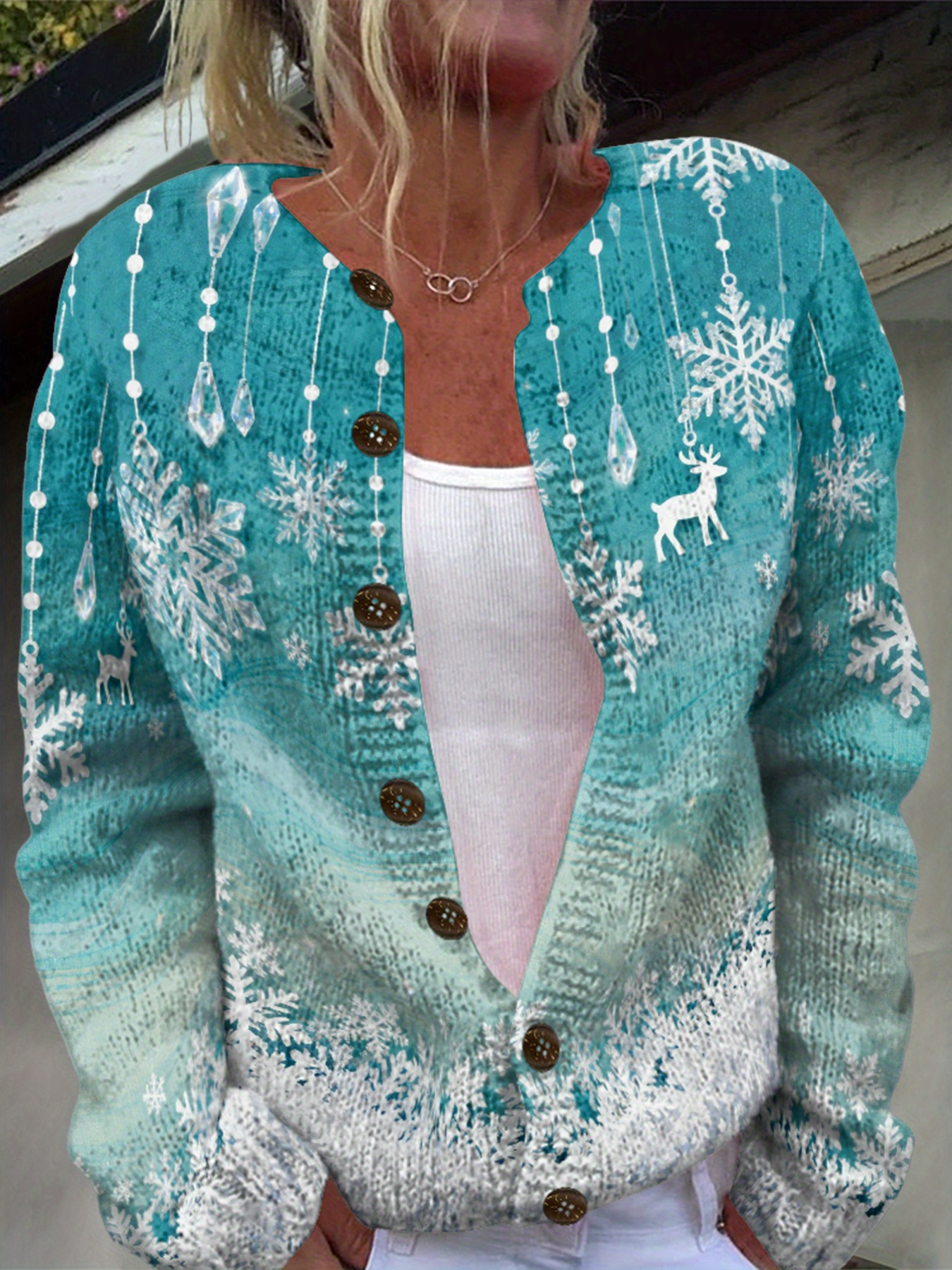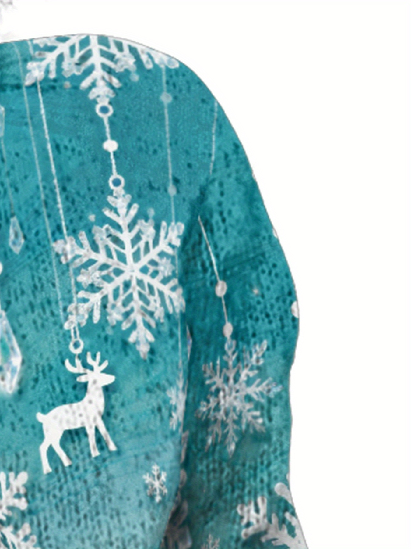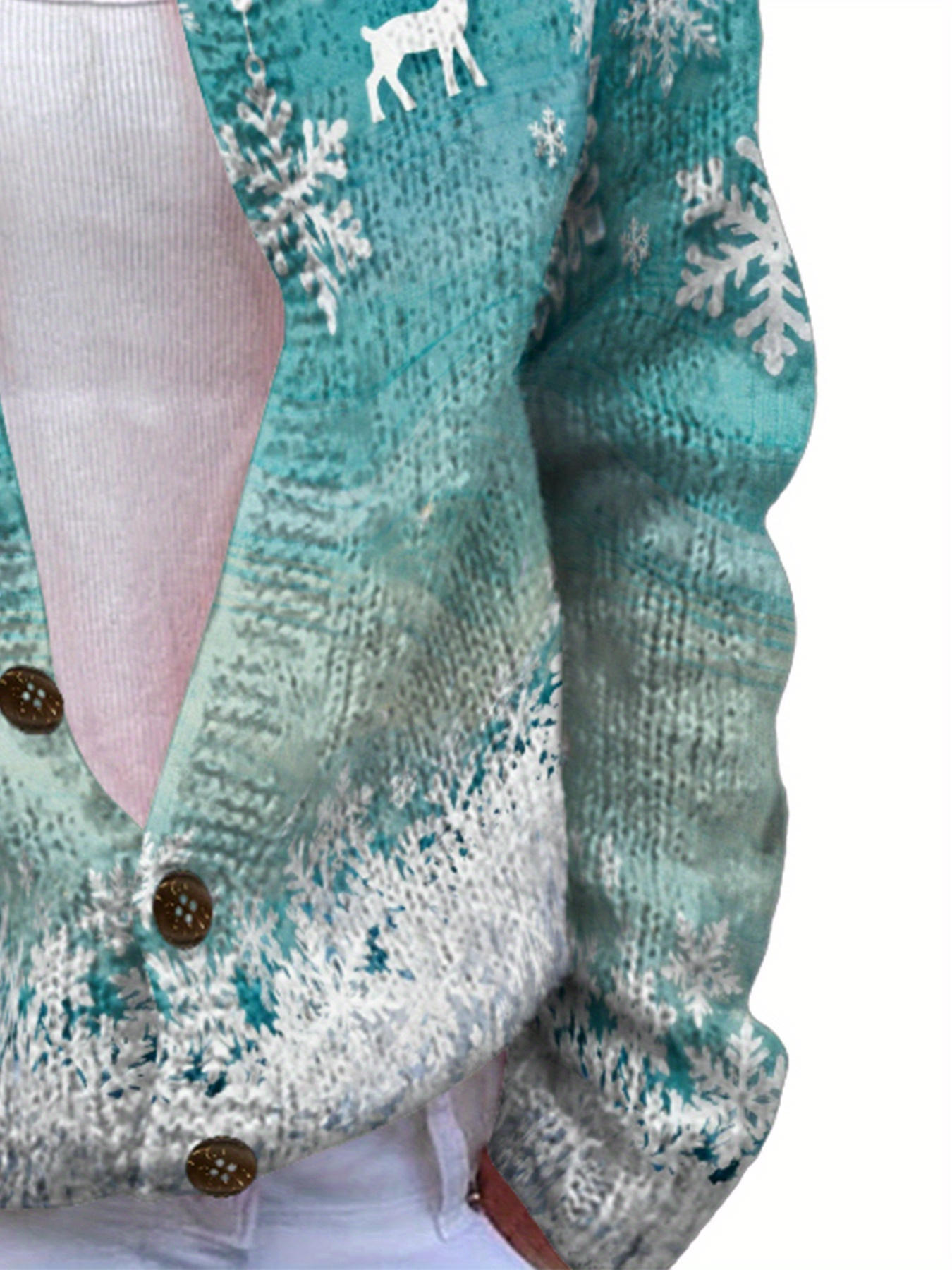 Women's Plus Size 0XL-6XL Turquoise & White Snowflake Button-Front Cardigan Sweater Coat - Soft Winter Jacket with Lace Collar, Cozy Loose Fit Christmas Party Outfits, New Year's Eve Holiday Dresses